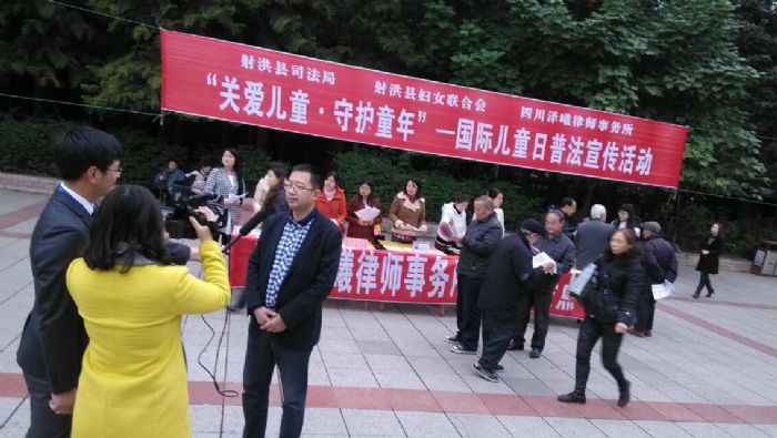 2014年11月20日上午,四川泽曦律师事务所联合射洪县司法局、射洪县妇女联合会,在新世纪广场开展了“关爱儿童、守护童年”为主题的国际儿童日普法宣传活动。